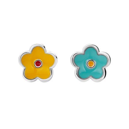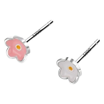 Po 999 Sterling Silver Flower Earrings – Sweet Contrast Color Small Studs for Women