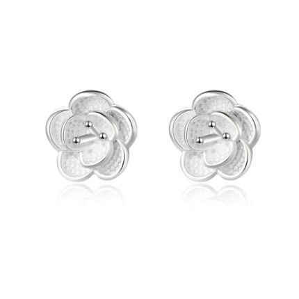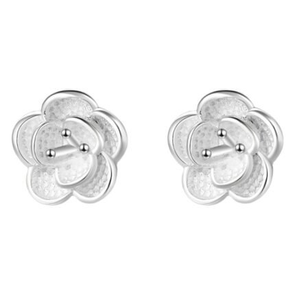 Po S999 Sterling Silver Rose Earrings – Elegant French Style Small Floral Studs for Women