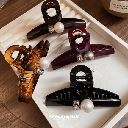 Elegant High-End Hair Accessories – Korean Style Pearl Cross Clip