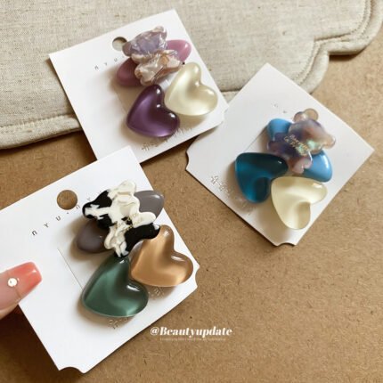 Heart-Shaped Bear Acrylic Resin Hair Clip – Korean Fresh Cute Duckbill Side Clip for Women