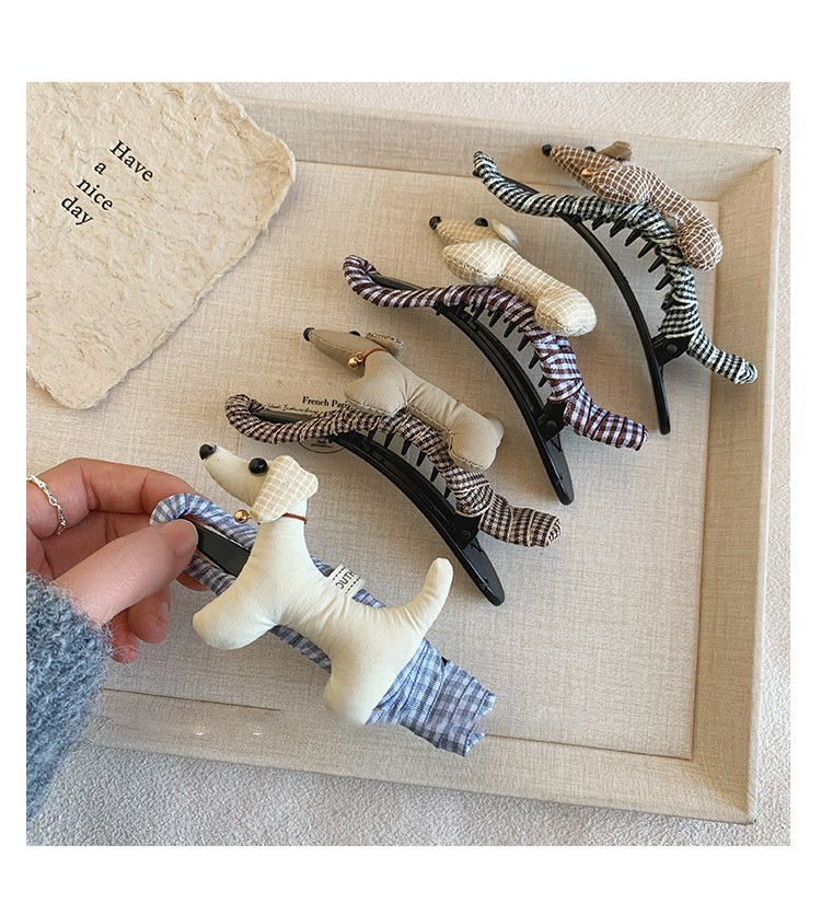 This acrylic fabric mesh puppy hairpin features a cute and fresh design, perfect for adding a playful touch to your hairstyle. The versatile duckbill clip securely holds hair in place, making it ideal for women and girls who love simple yet charming hair accessories.