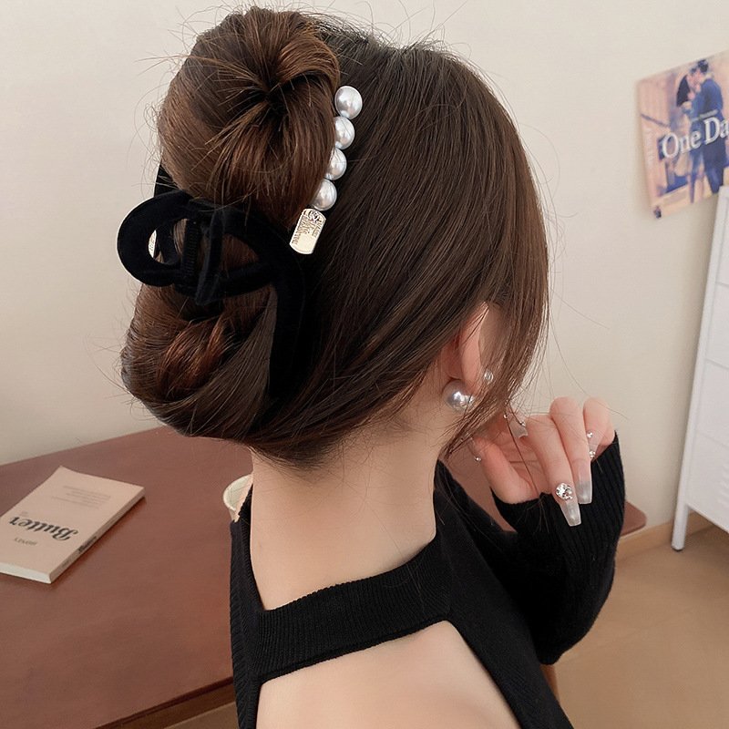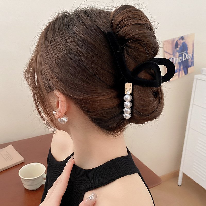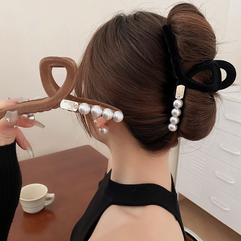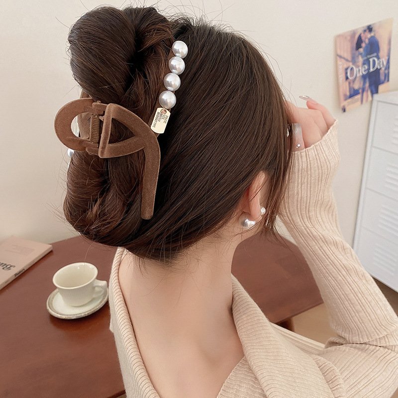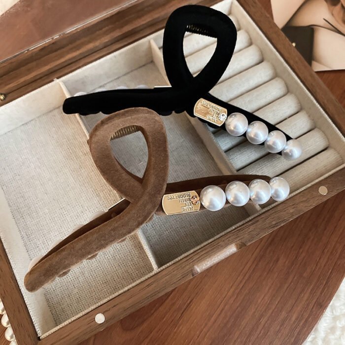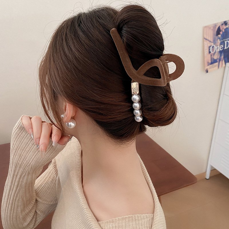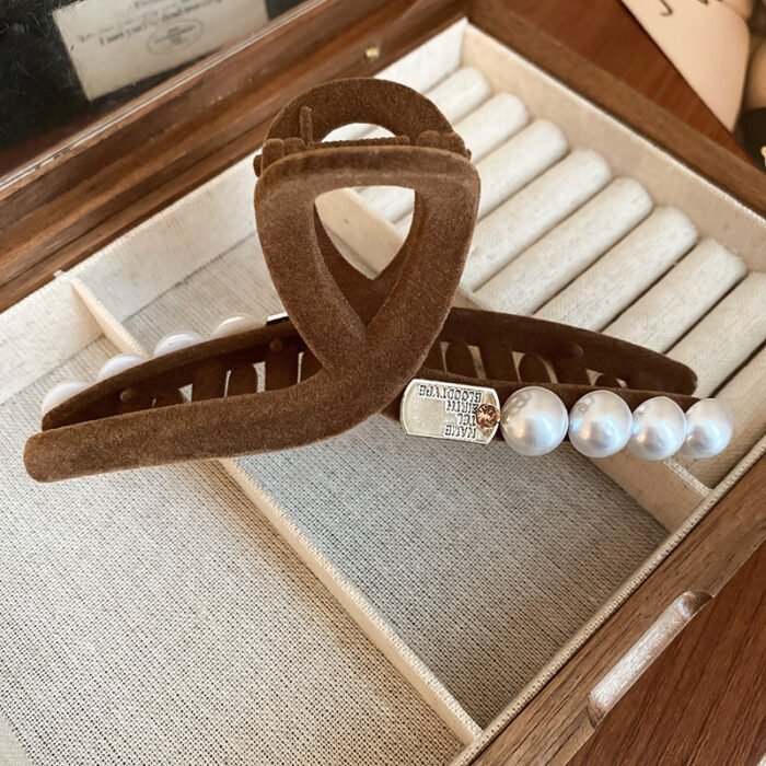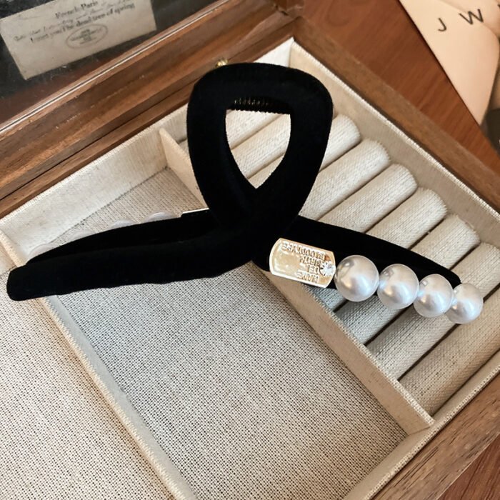 Pearl Flocking Hairpin – Large Volume Shark Clip for Women