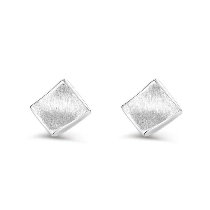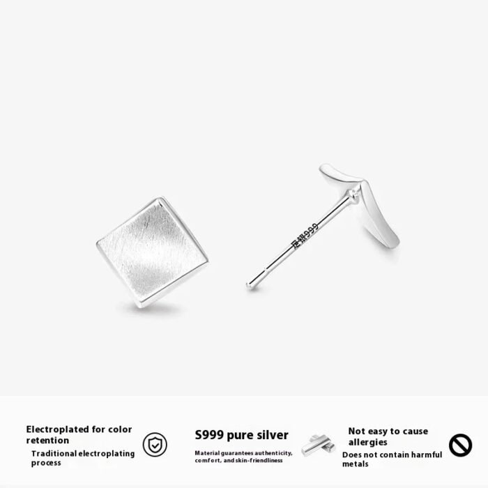 Simple Small Silver Earrings – S999 Quadrilateral Stud Design