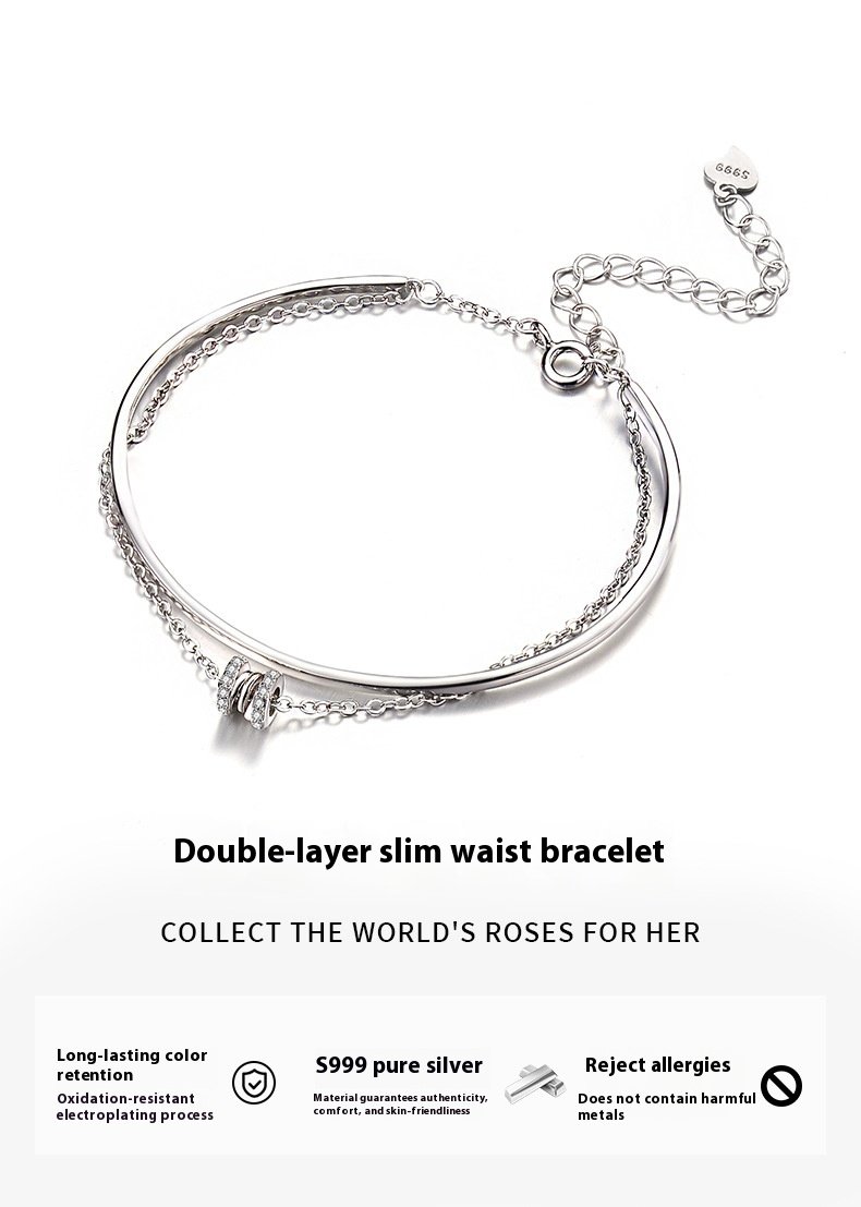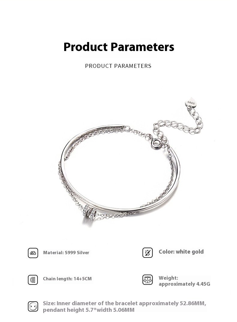 This S999 sterling silver double-layer bracelet features a minimalist, cold style design perfect for women who love niche and fashionable accessories. Lightweight and versatile, it’s ideal for everyday wear and adds a subtle edge to any outfit.