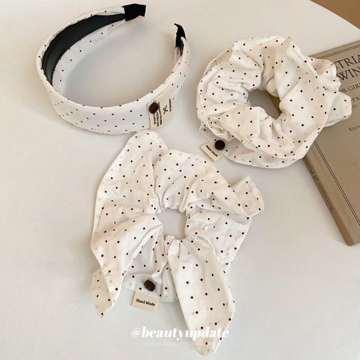 Be the first to review “Fabric White Polka Dot Wide-Brim Hair Tie – Versatile Low Ponytail Hair Rope for Women” Cancel reply