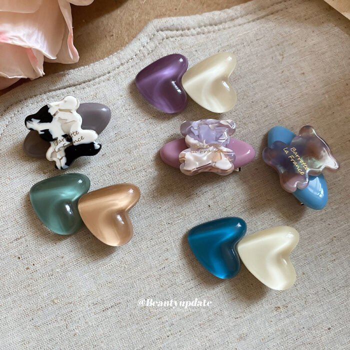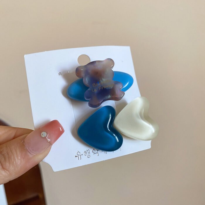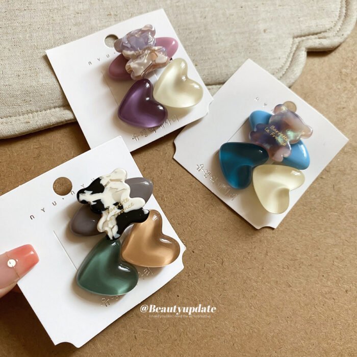 This heart-shaped bear acrylic resin hair clip features a fresh and cute Korean-style design, perfect for securing broken or side hair. The duckbill clip combines charm and functionality, making it an ideal hair accessory for women seeking stylish yet practical clips.