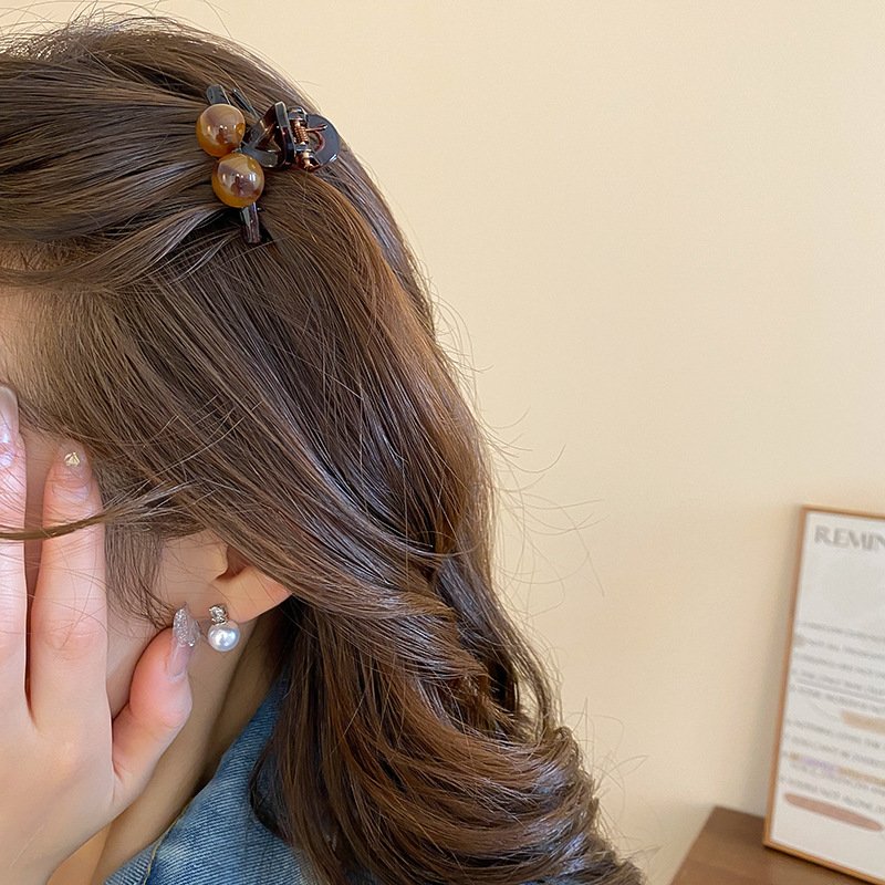 This Maillard round acrylic mini hairpin is designed for small bangs, offering a high-grade grip and light luxury feel. Perfect as a stylish and subtle side clip, it complements any hairstyle with ease.
