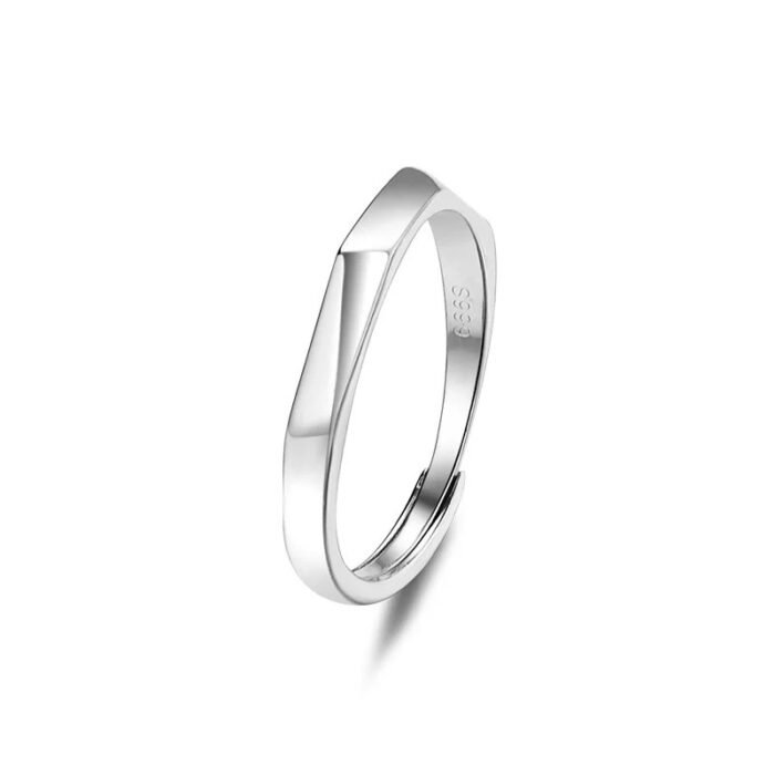 Po S999 Sterling Silver Minimalist Couple Ring – Geometric Artistic Unisex Jewelry Gift