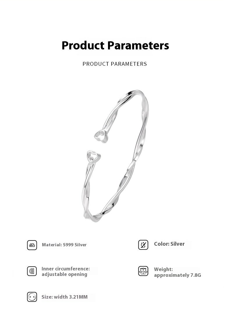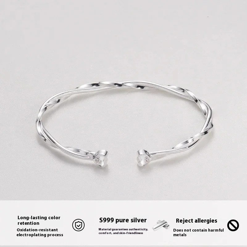 Crafted from S999 sterling silver, this Mobius-inspired open bracelet features a unique twisted design symbolizing infinity. Lightweight and fashionable, it’s ideal for women who love elegant, minimalist, and niche-style accessories.