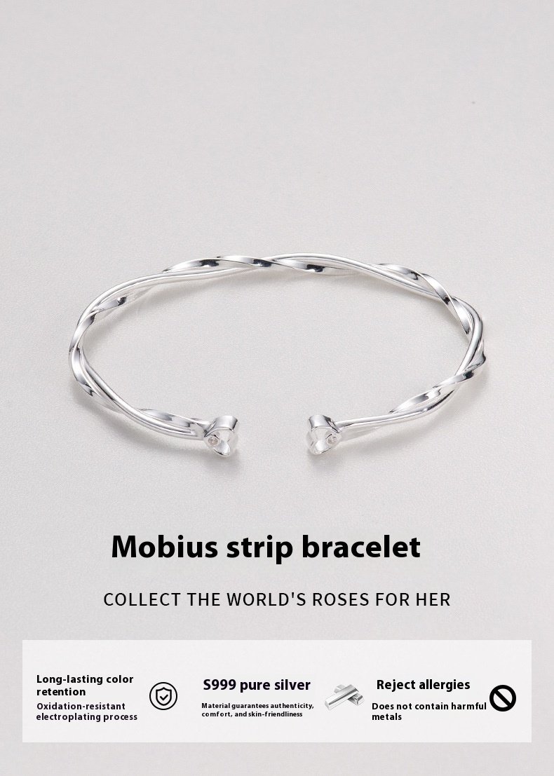 Elegant Mobius Winding Bracelet – Po S999 Sterling Silver Jewelry
