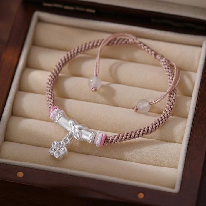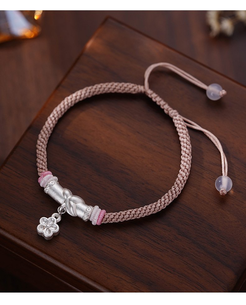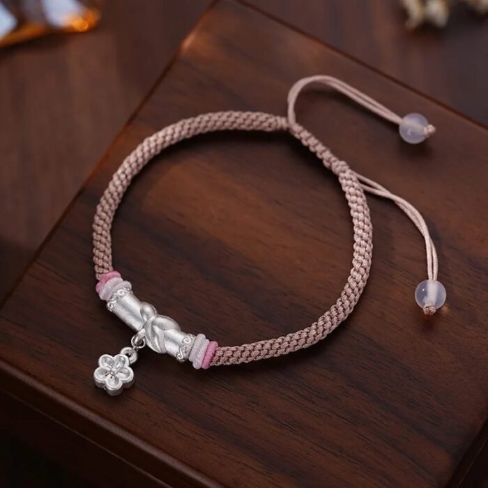 High-End Chinese Style Bracelet – S999 Silver Slub Floral Design