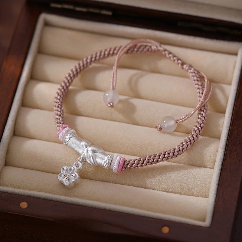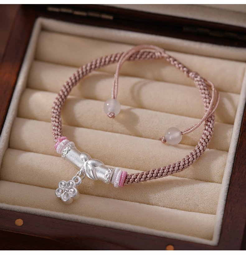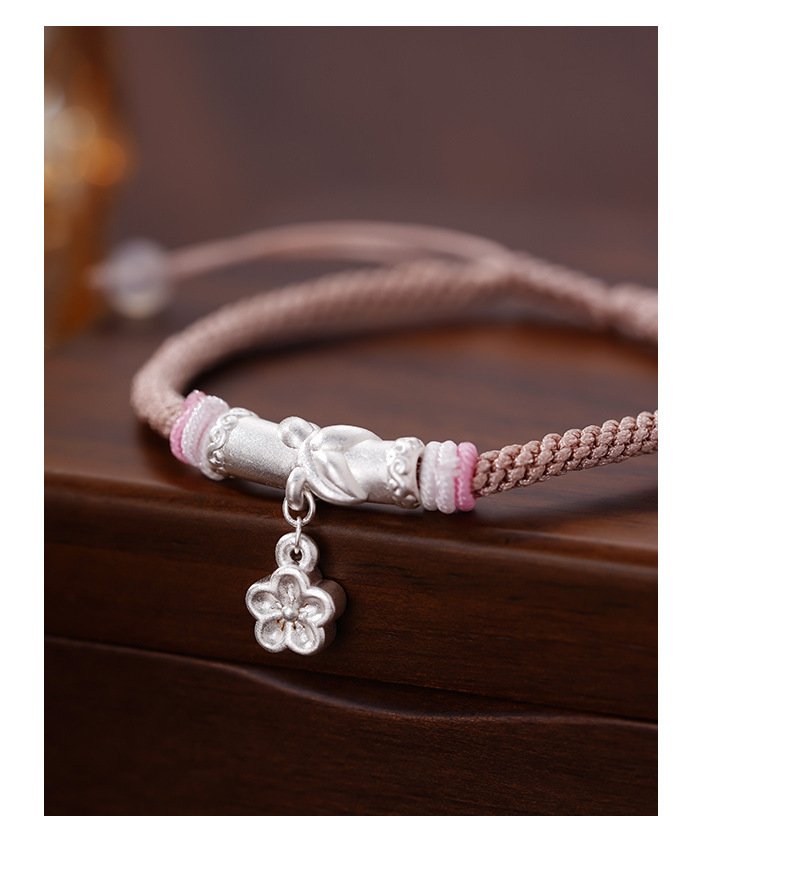 This Po S999 sterling silver slub flower bracelet blends traditional Chinese aesthetics with light luxury design. Perfect for women who appreciate national style, it offers elegance and sophistication, suitable as a versatile accessory or hair bracelet.