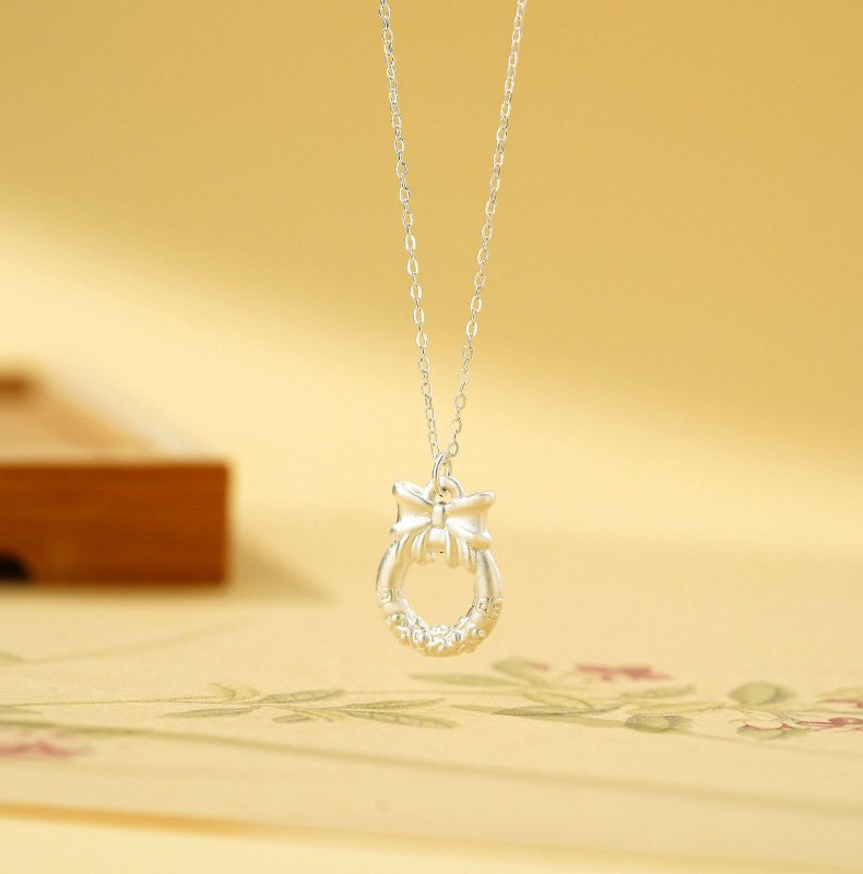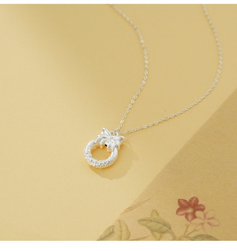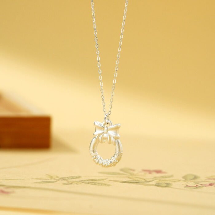 This Po S999 sterling silver bow ring necklace blends a small fresh and sweet style with an elegant, niche design. Its all-match clavicle chain adds a touch of femininity to daily wear and makes a perfect gift for women who love refined accessories.