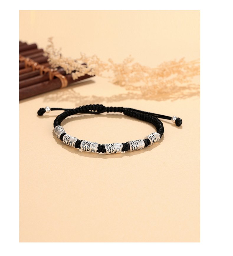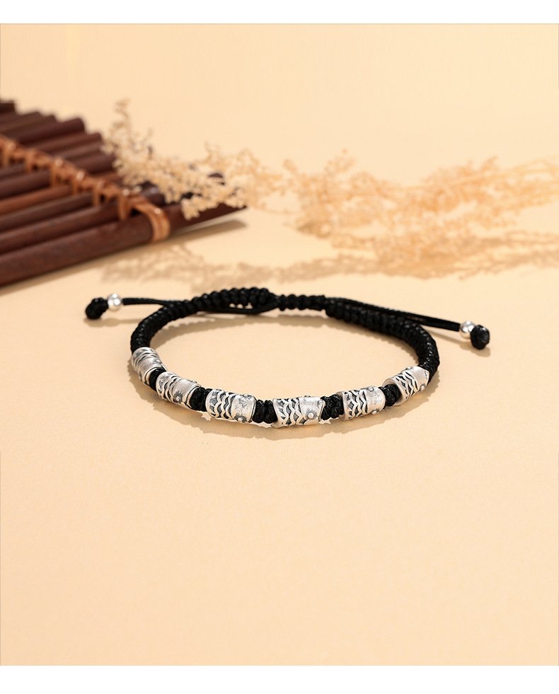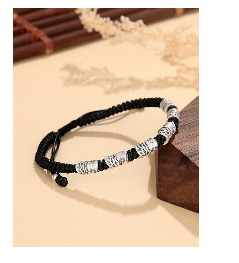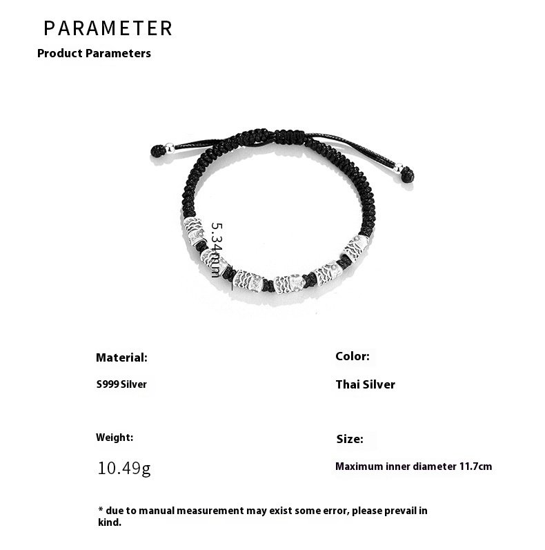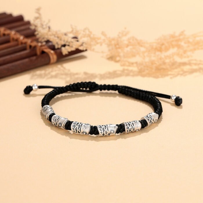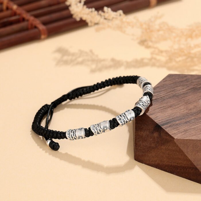 This S999 sterling silver koi bracelet features a black woven rope design symbolizing luck and resilience. Its retro style and minimalist aesthetic make it a perfect choice for couples or individuals seeking unique, meaningful jewelry. Lightweight and comfortable for everyday wear.