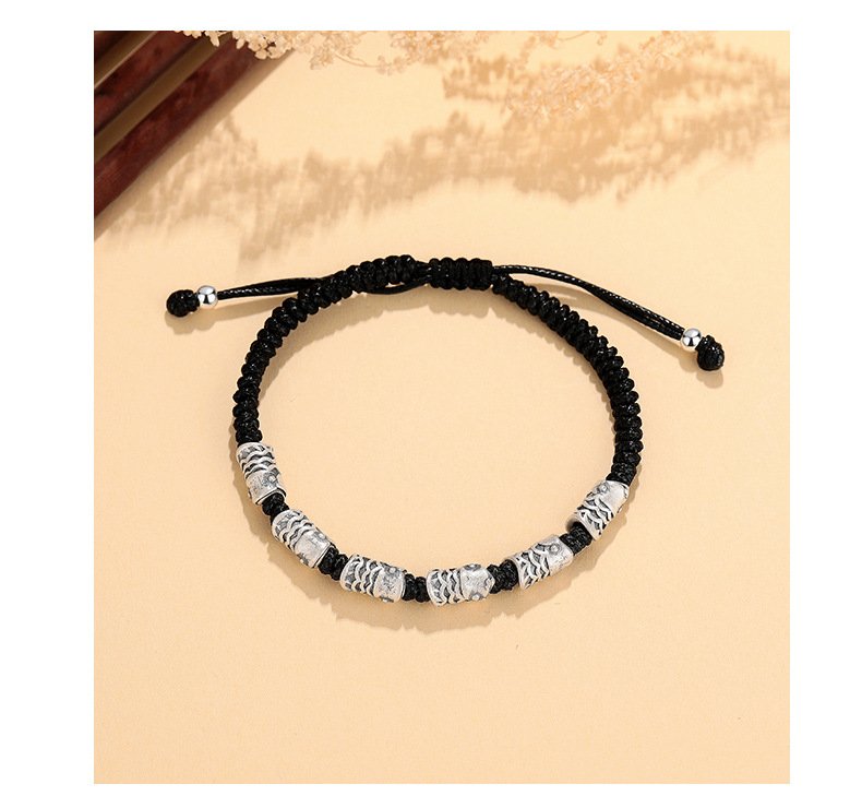 S999 Silver Koi Bracelet – Niche Handmade Black Rope for Him & Her