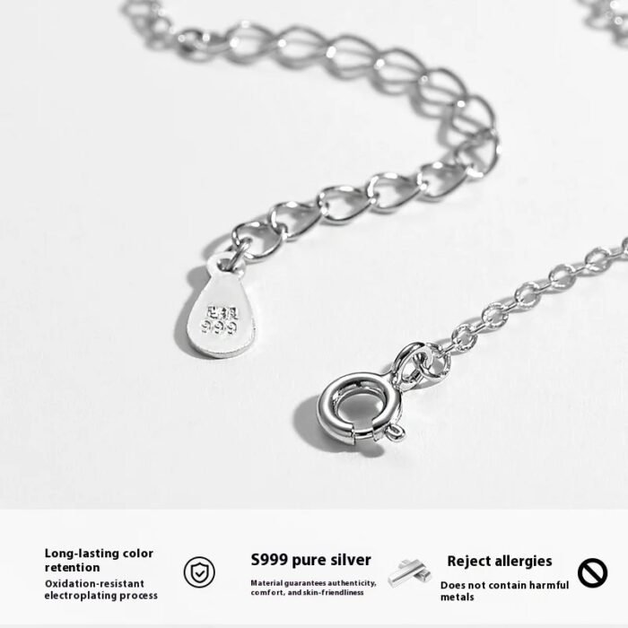 Trending S999 Silver Necklace – Blue Heart & Clover Design for Women