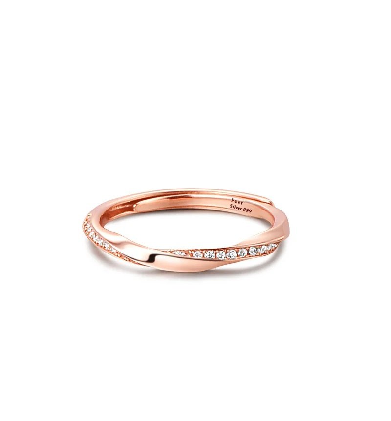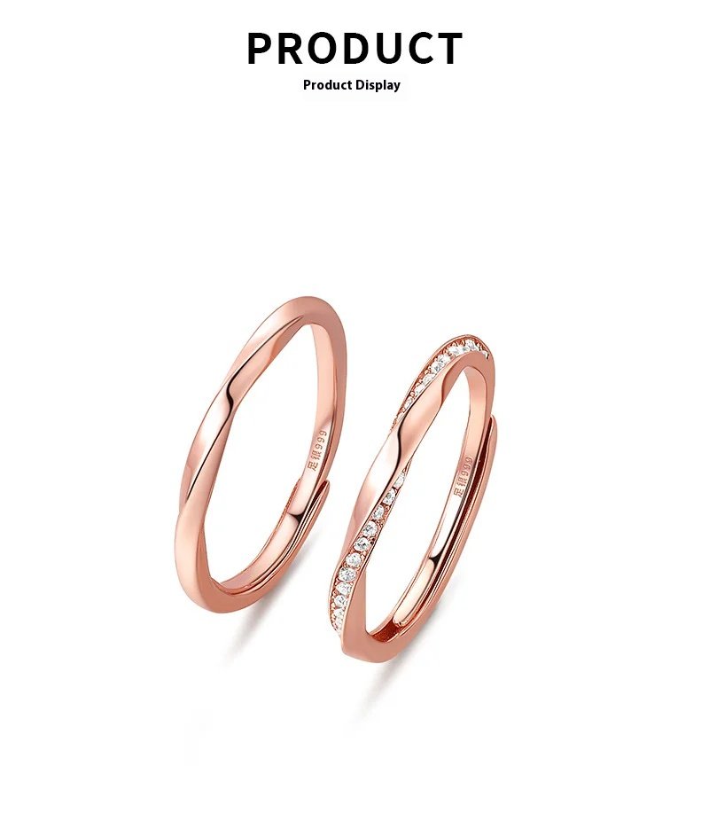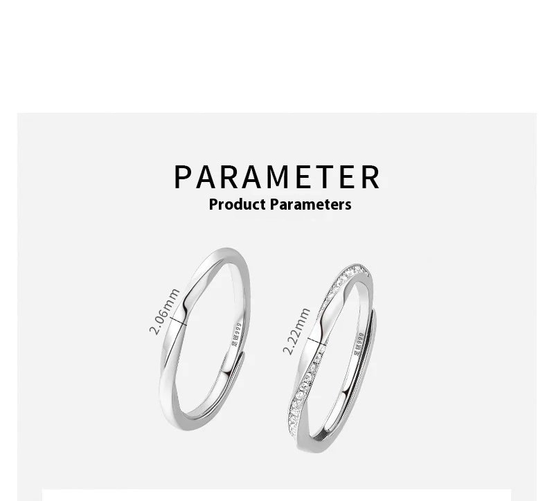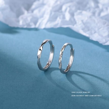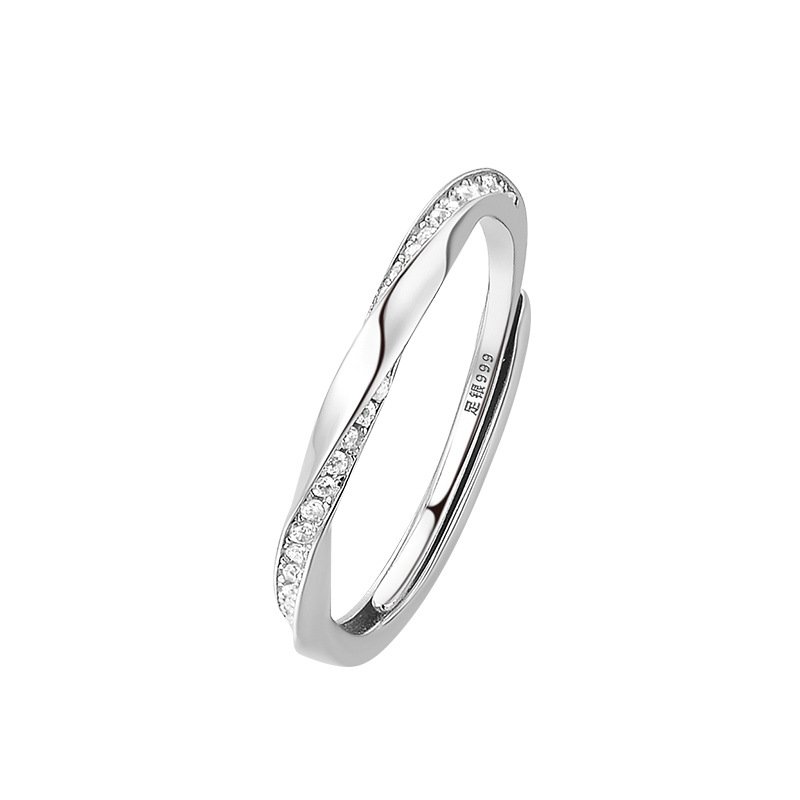 This Po S999 sterling silver Moebius ring features a sleek design accented with zircon stones. Minimalist and elegant, it’s a niche couple’s ring that symbolizes unity and style, perfect for women seeking unique and meaningful jewelry.