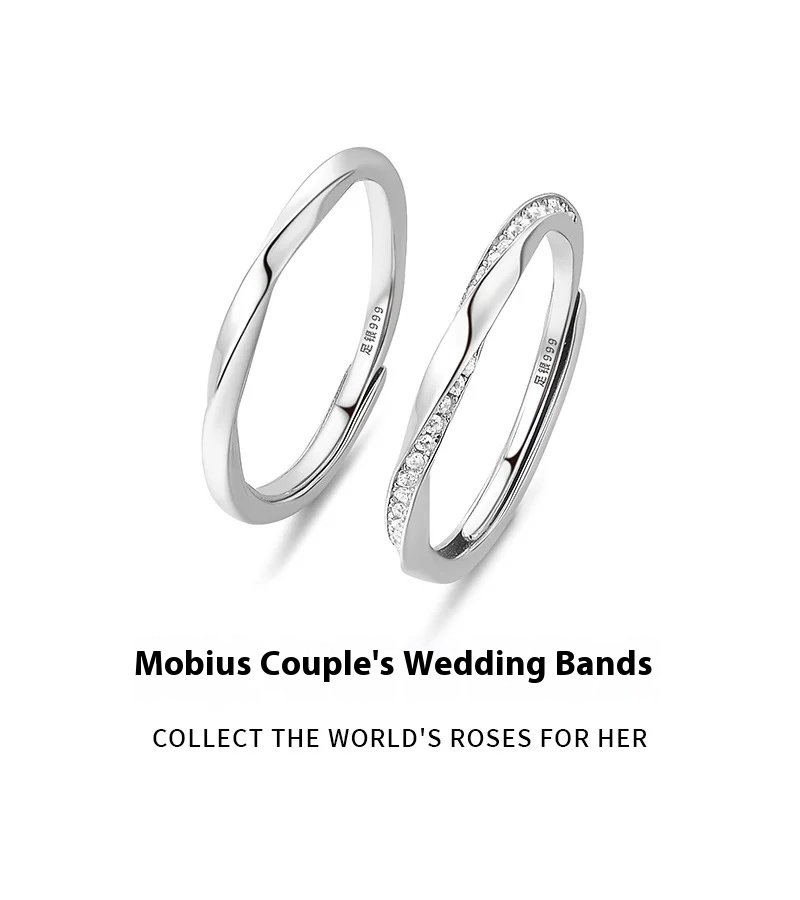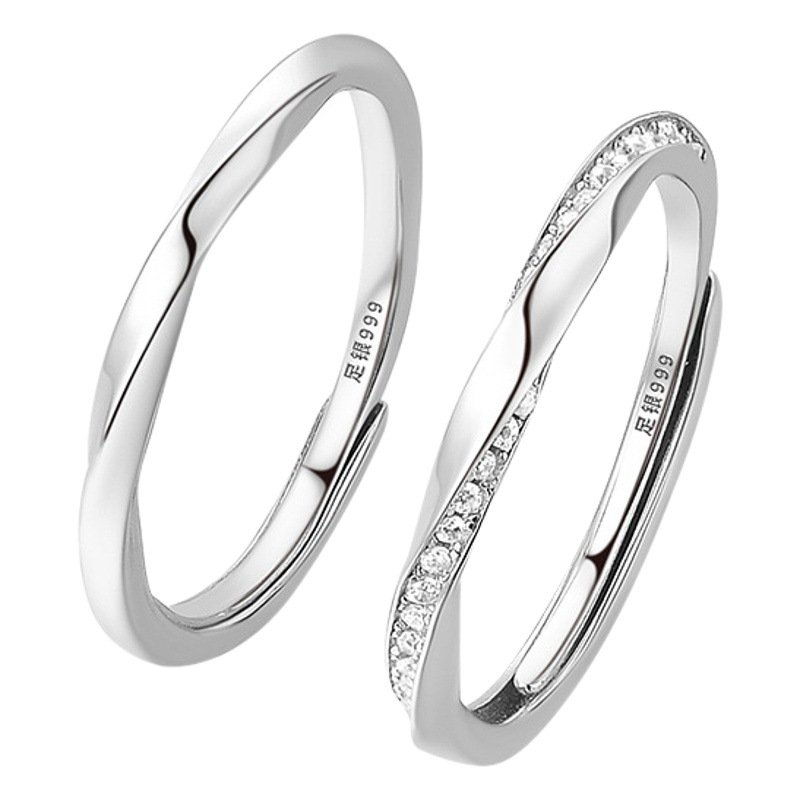 Po S999 Sterling Silver Mobius Ring Couple’s Adjustable Luxury Gift