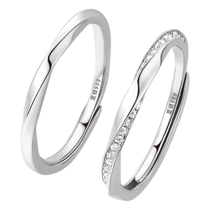 Elegant Couple’s Moebius Ring – Po S999 Silver Zircon Band