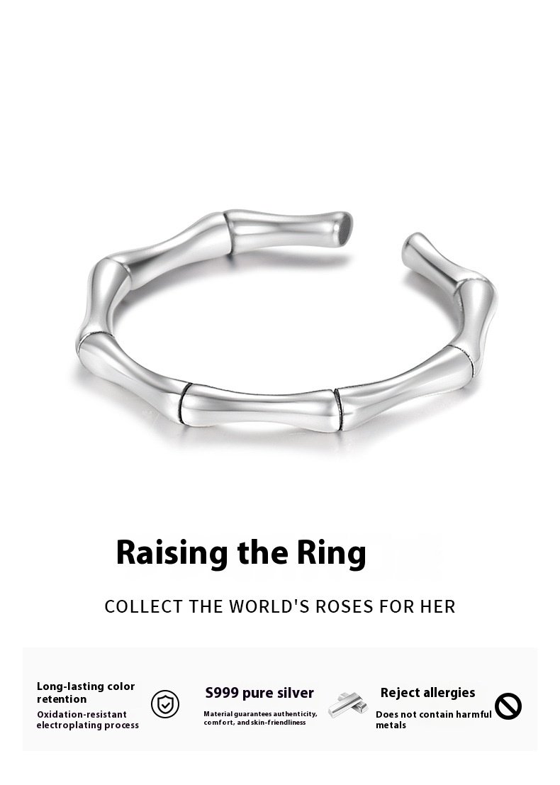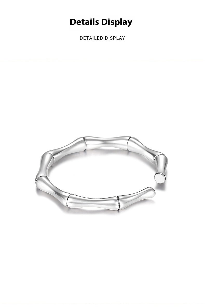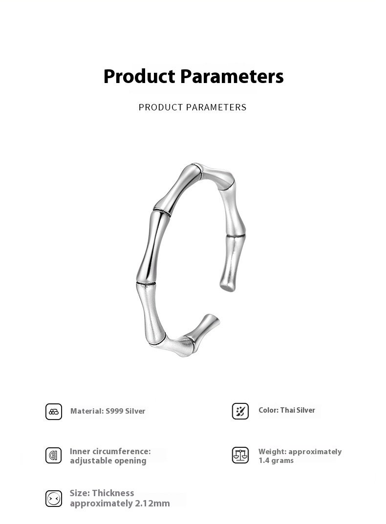 Crafted from S999 sterling Thai silver, this bamboo-shaped open ring blends vintage Chinese Guofeng aesthetics with modern simplicity. Adjustable design fits comfortably and adds a unique, cultural touch to everyday outfits. Ideal for women who love retro, artisanal jewelry.