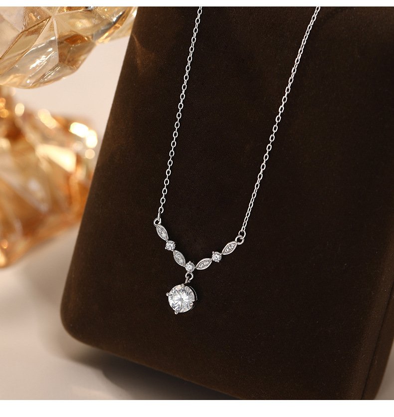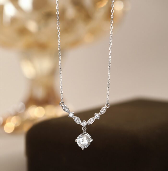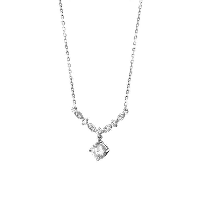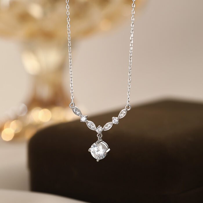 Po S999 Sterling Silver Zircon Pendant Necklace – Light Luxury Niche Woolen Chain for Women