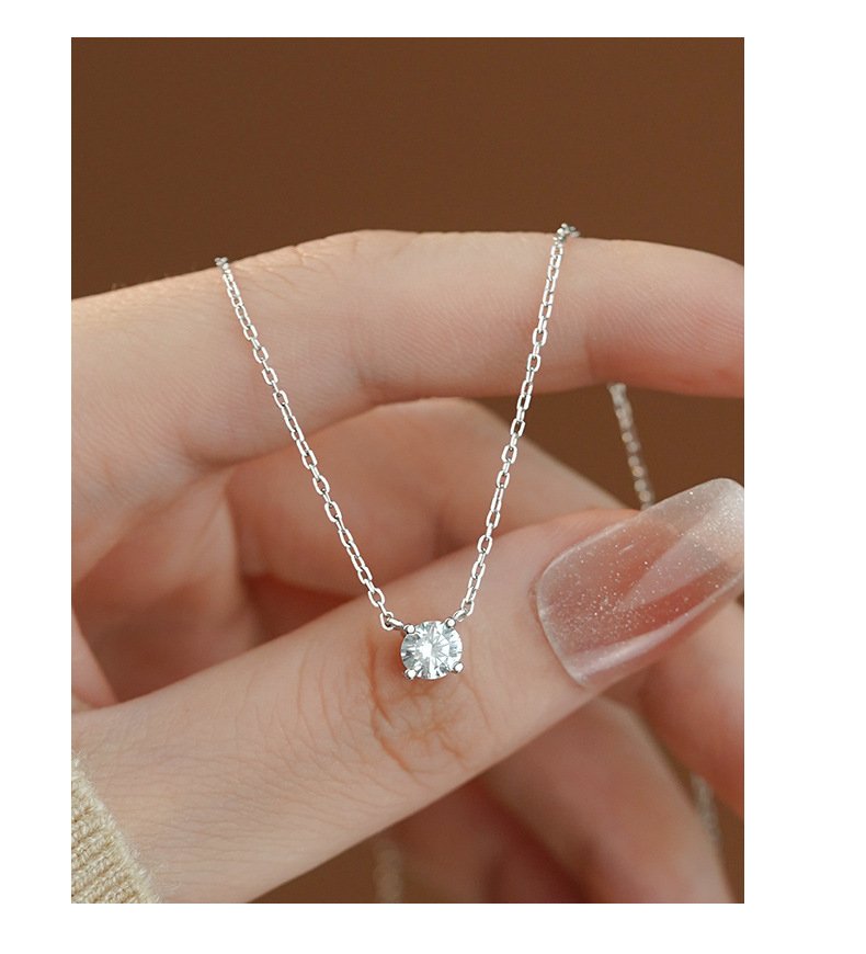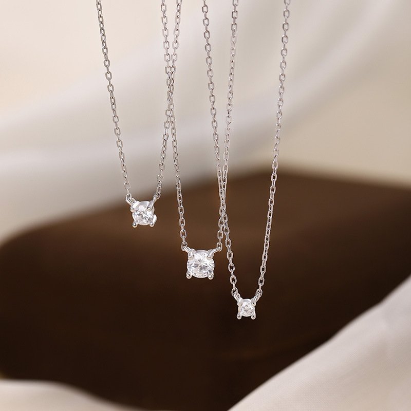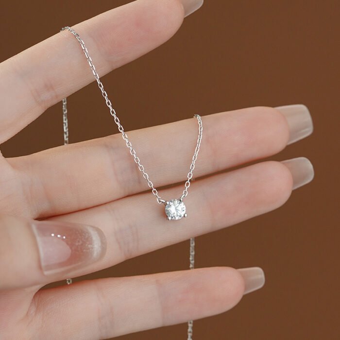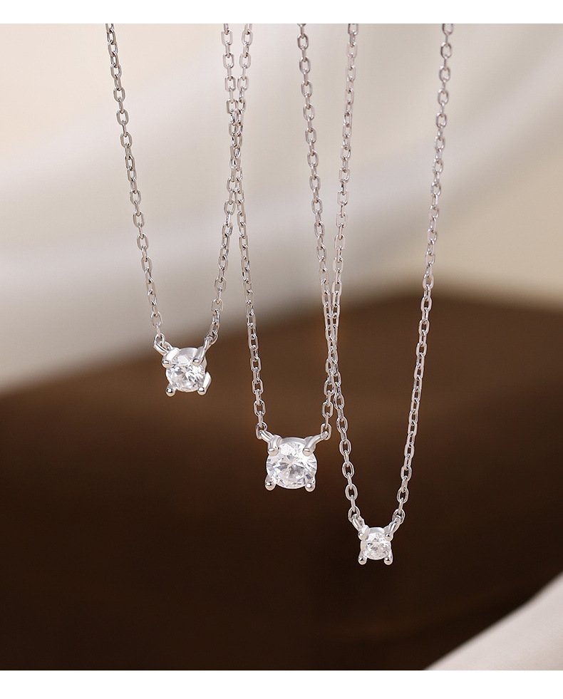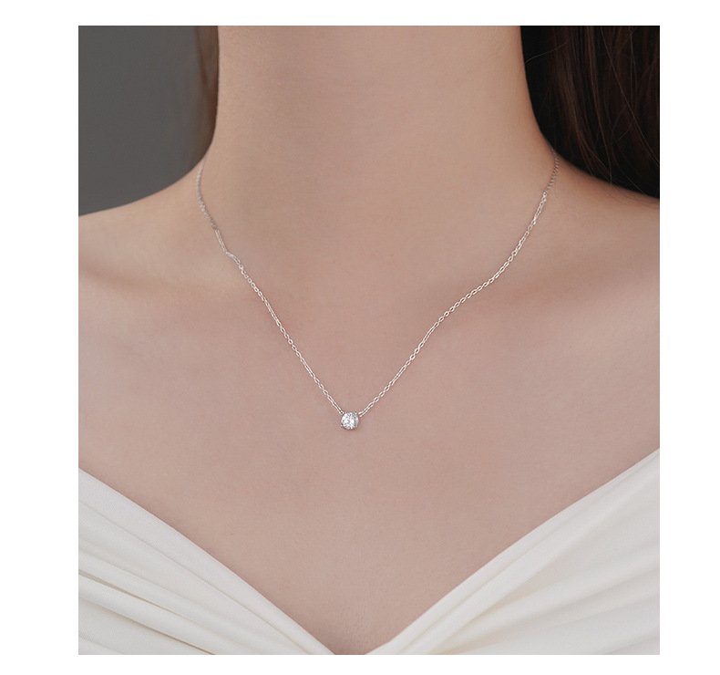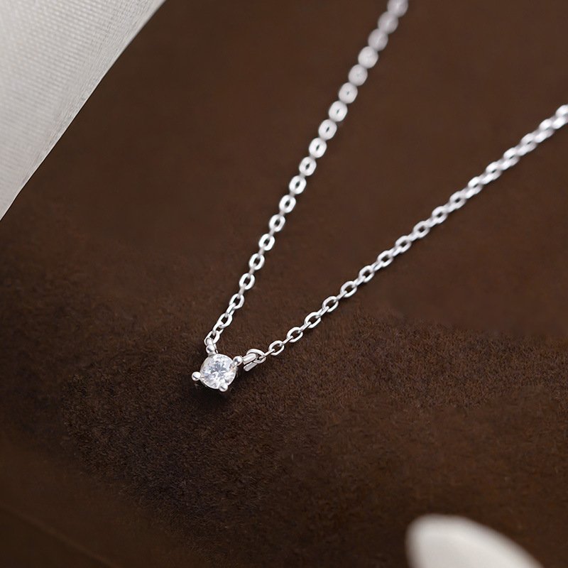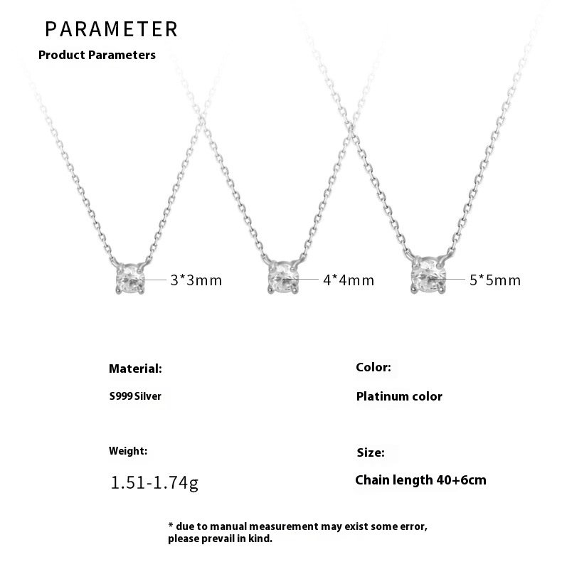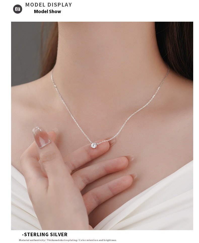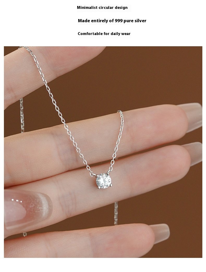 Po S999 Sterling Silver Zircon Necklace – Elegant French Style Temperament Clavicle Chain for Women