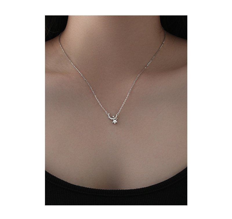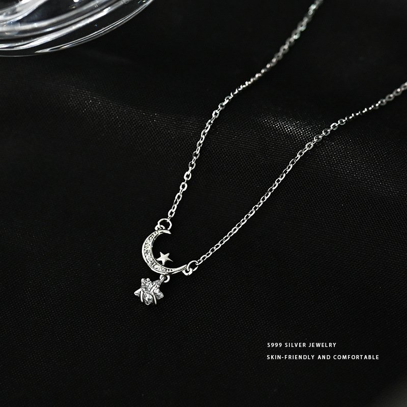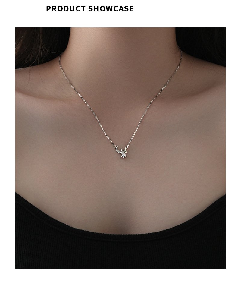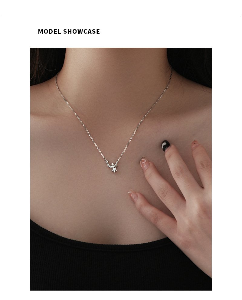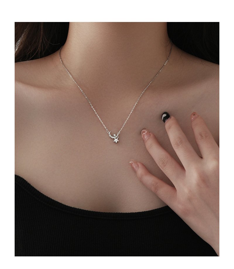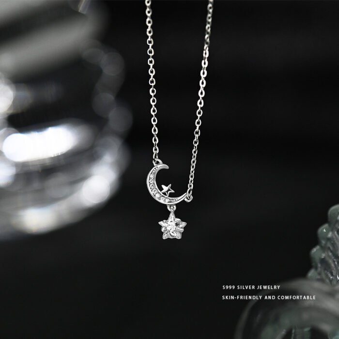 This S999 sterling silver star and moon necklace features a delicate light luxury design with a brilliant sparkle. Perfect for women who love niche, elegant jewelry, this fashionable clavicle chain adds a celestial charm to both casual and dressy outfits.