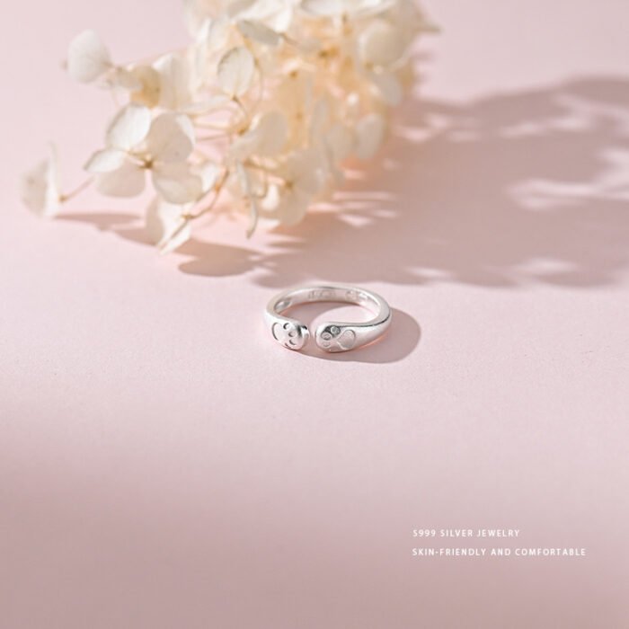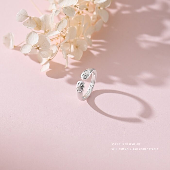 This S999 pure silver open ring features a delicate cat claw design symbolizing peace and joy. With a light luxury and sweet aesthetic, it captures a niche, trendy style perfect for girls seeking unique, meaningful jewelry.