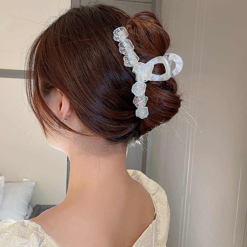 This summer super fairy hairpin features a geometric design with colorful shells, perfect for stylish updos. Inspired by Korean ins style, this all-match shark clip grip is a trendy and versatile hair accessory for any occasion.