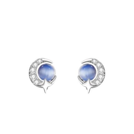 Blue Cat’s Eye Planet Earrings – S999 Silver Dainty Studs for Women