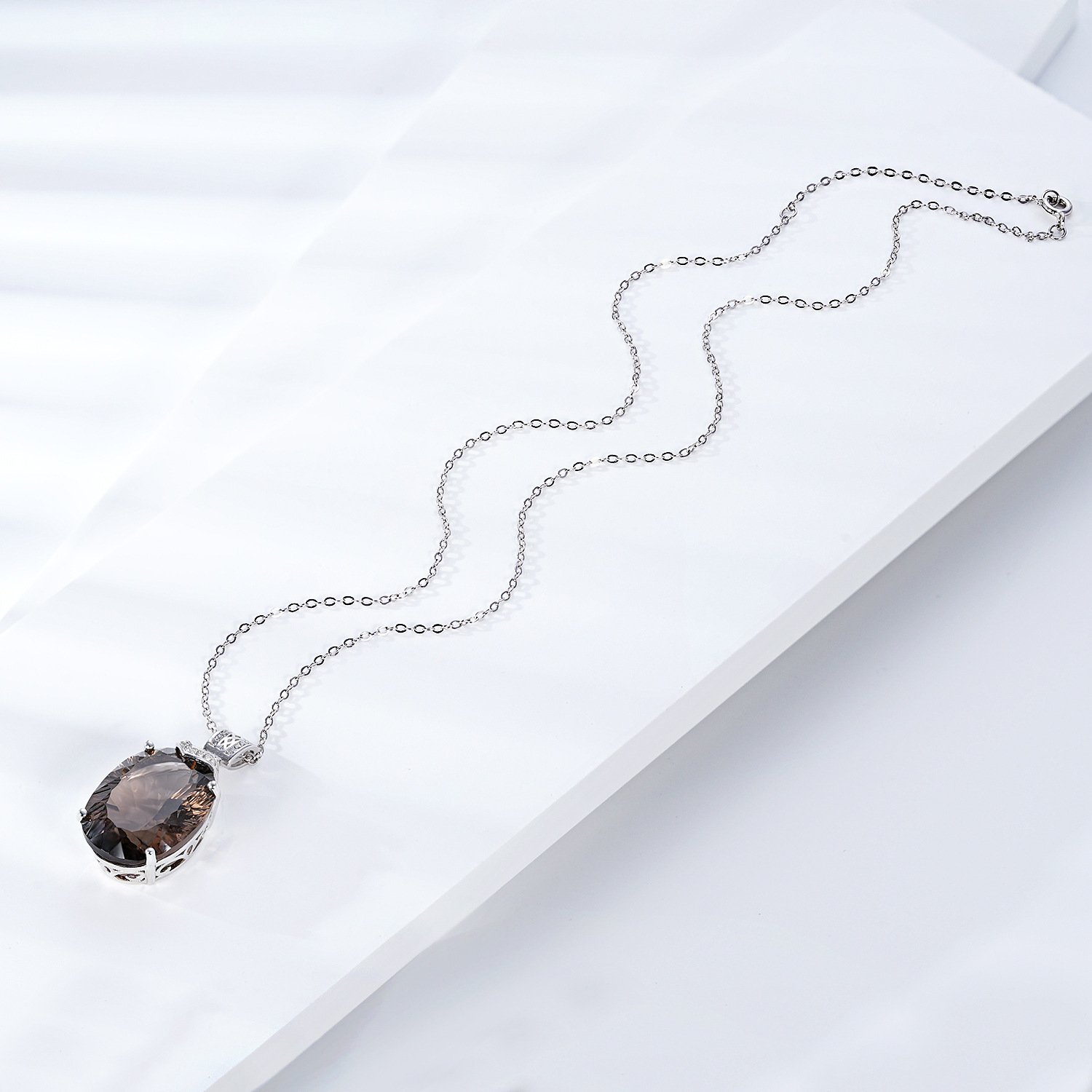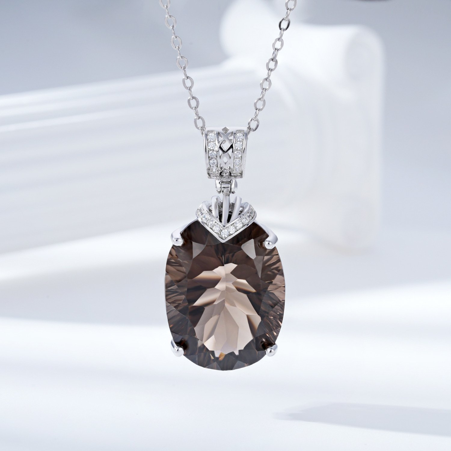 Luxury And High-grade Natural Tea Crystal Pendant Fashionable Design S925 Silver Inlaid Egg Shaped Gem Necklace