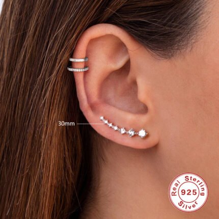 S925 Sterling Silver Single Row 7 PCs Shiny Diamond Ear Studs